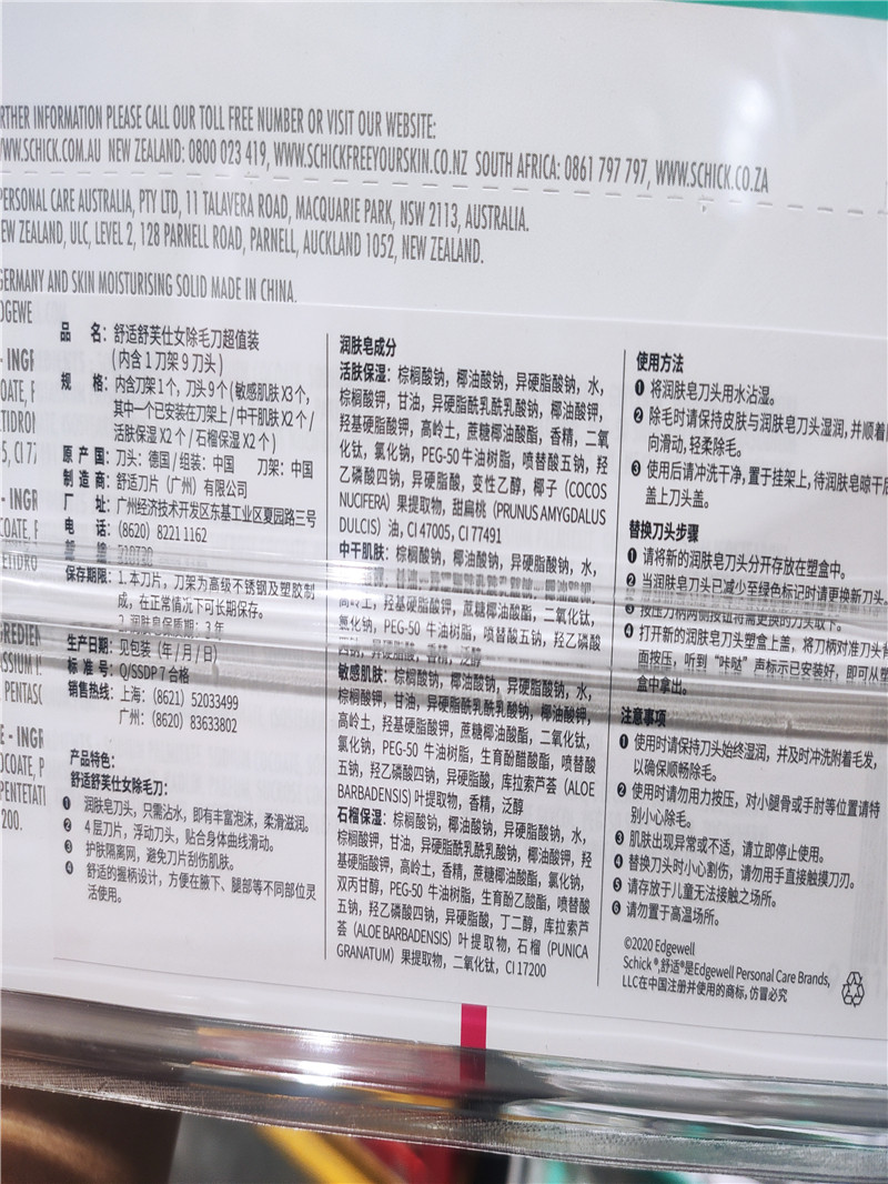 Shanghai Costco opens the comfort of Ms. Schufs shaving knife delicate muscle sensitive muscle 1 knife frame 9 knife head
