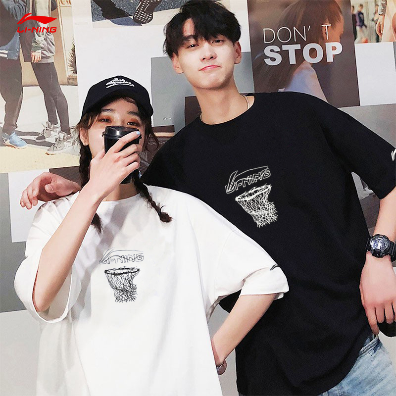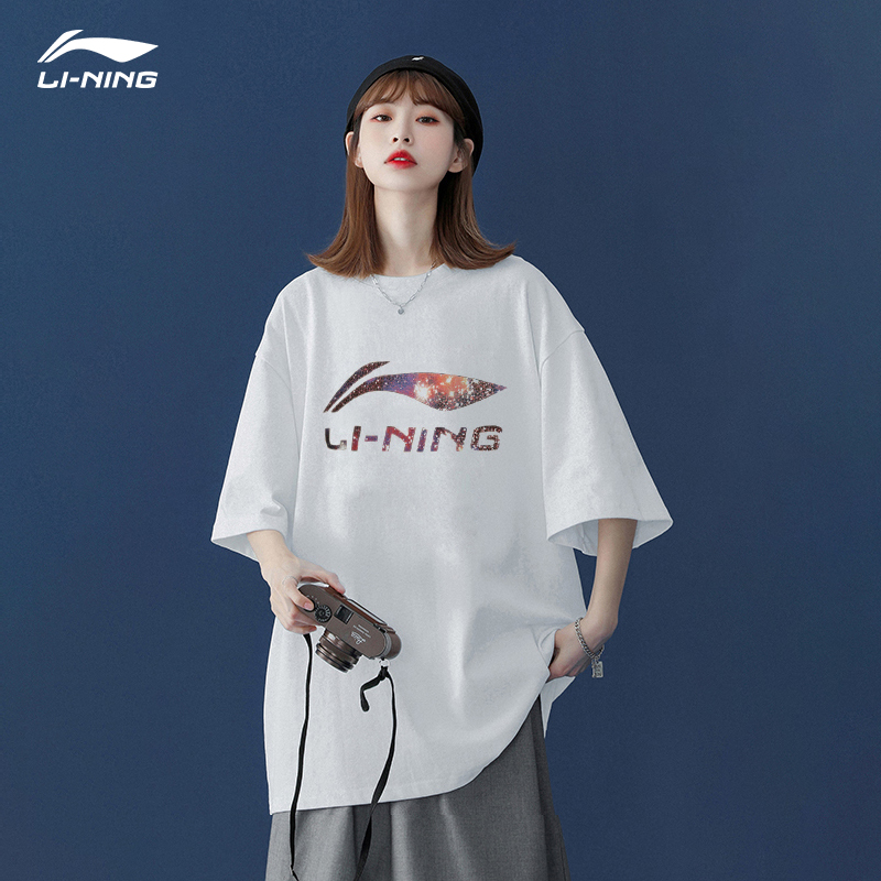 Li Ning Short Sleeve T-shirt Woman 2022 New Pure Cotton Round Collar Blouses Male Summer National Tide Relaxation Leisure Sports Dance