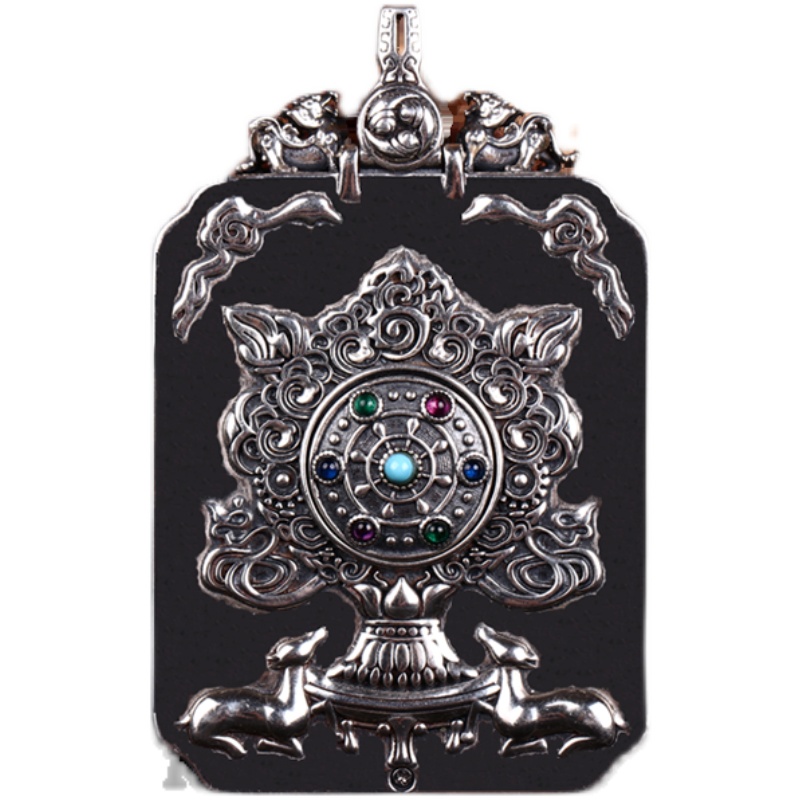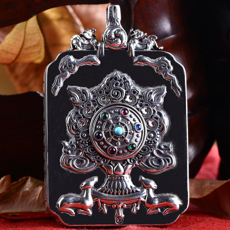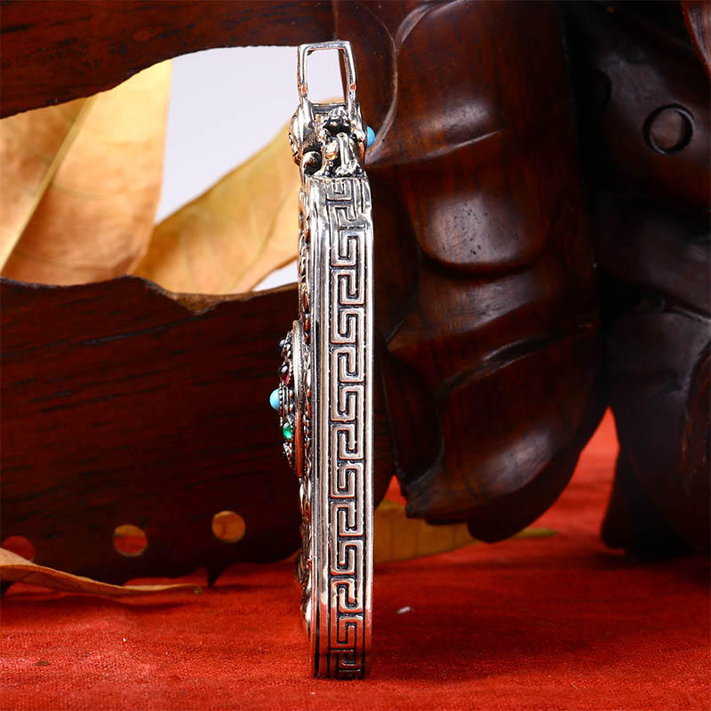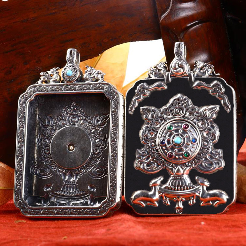 925 silver vintage Gawu box Thangka pendant Peace charm pendant Sterling silver inlaid gem Buddha brand silver accessories