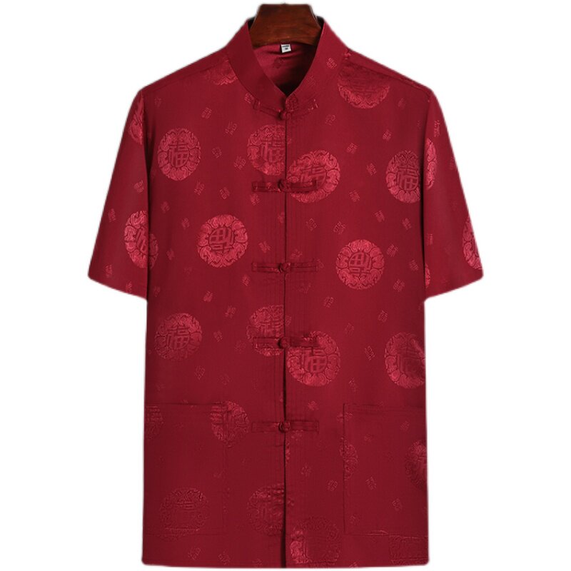 Fu word short-sleeved red top Fu word short-sleeved gray top Fu word short-sleeved white top Fu word short-sleeved beige top Fu word short-sleeved Tibetan blue top round dragon short-sleeved red top round dragon short-sleeved gray top round dragon short