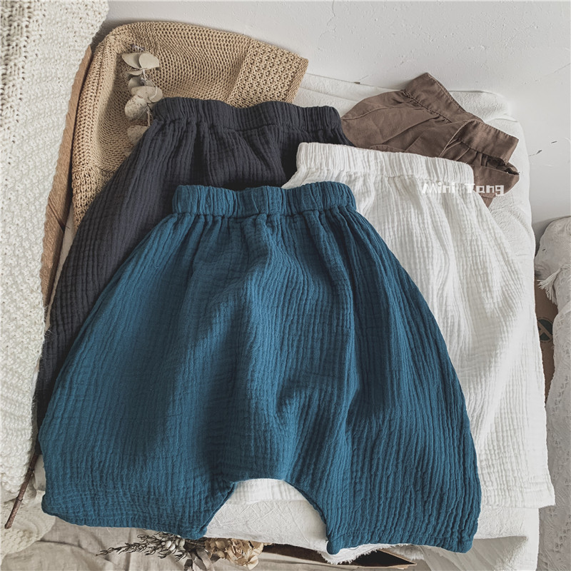 Soft cotton self-leaving ~ children Korean custom cavity tone full cotton Harun pants neutral male and female child clothing thin 6 sub pants summer tide