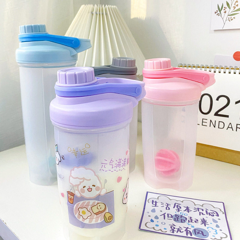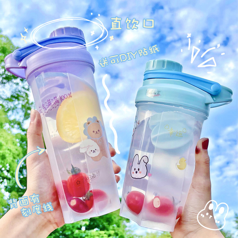 Cute ins shaker cup plastic cup high-value female fitness sports water cup student military training adult cute cup