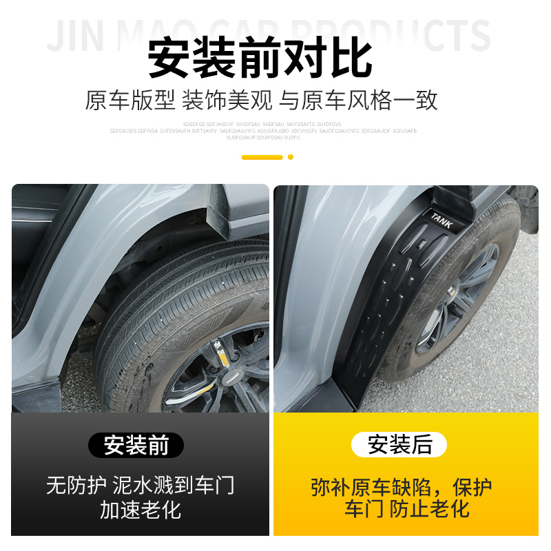 Rear wheel lining fender(with standard—1 pair)Send snap mounting tool Original model Rear wheel lining fender (without standard—1 pair)Send snap mounting tool thickened and widened wheel fender