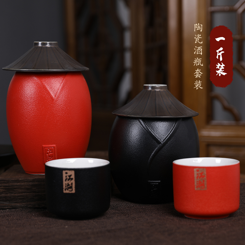 Jingdezhen Ceramic empty wine bottle 1 catty with medieval winery Wine Pot suit Seal small wine Wine With Wine Jar
