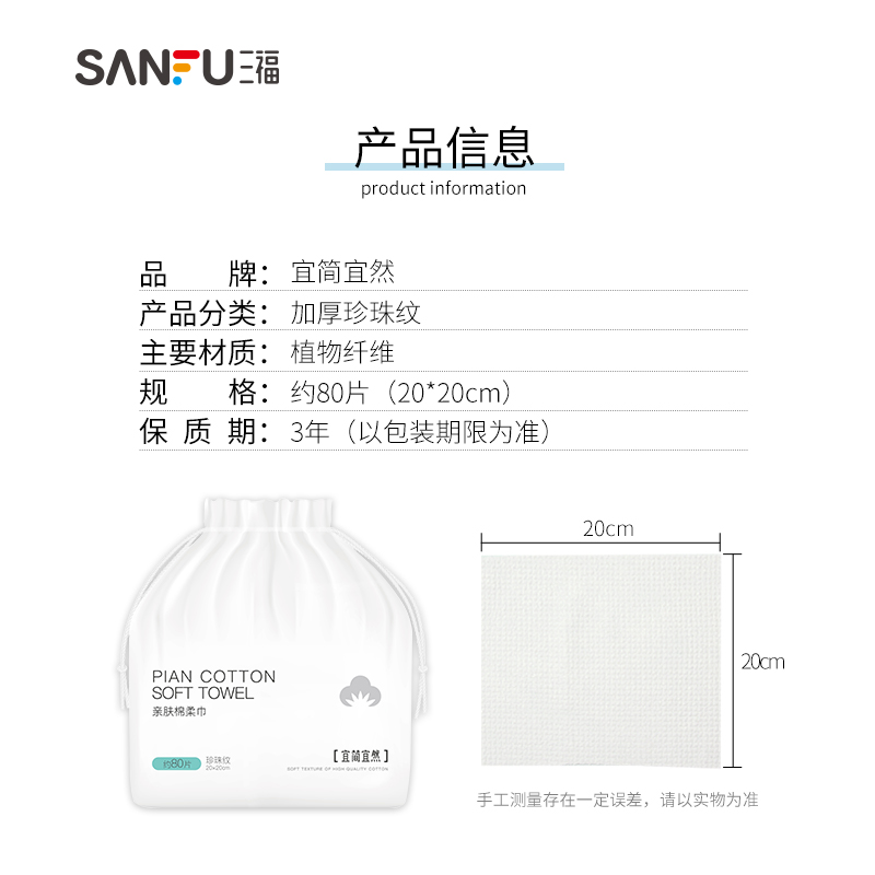Sanfu YiKAN Pleasant Pearl Tattooed Face Towel Wash Face dry and wet Dual use 80P Face cleaning Cleansing Face Cleansing Cotton Flexo