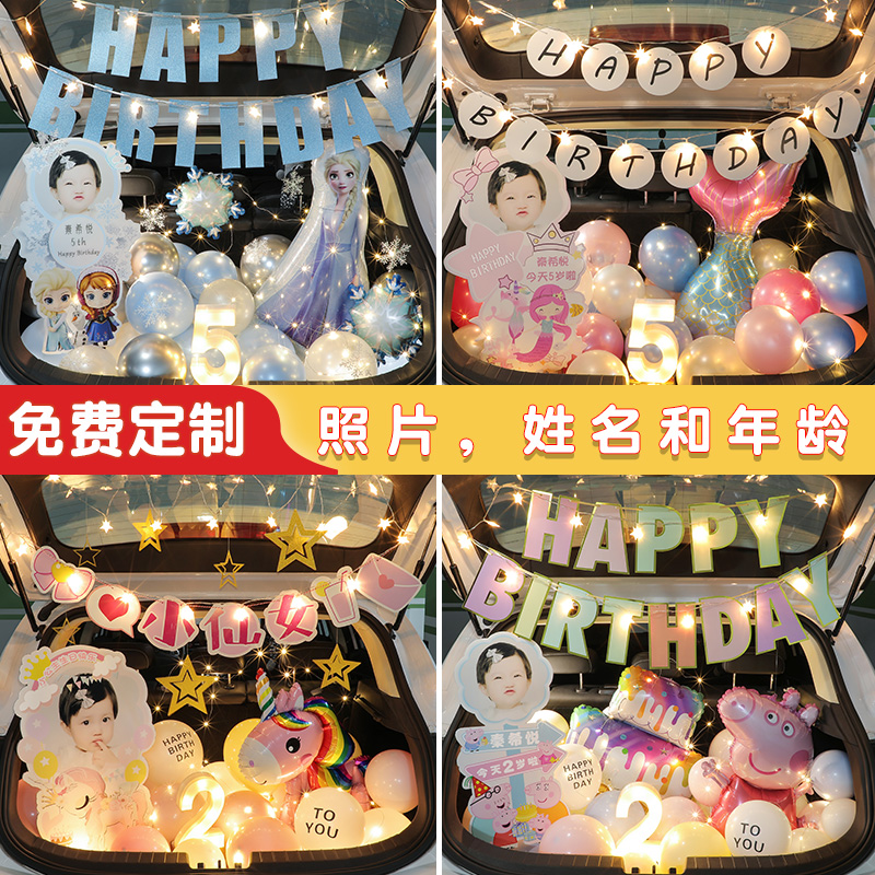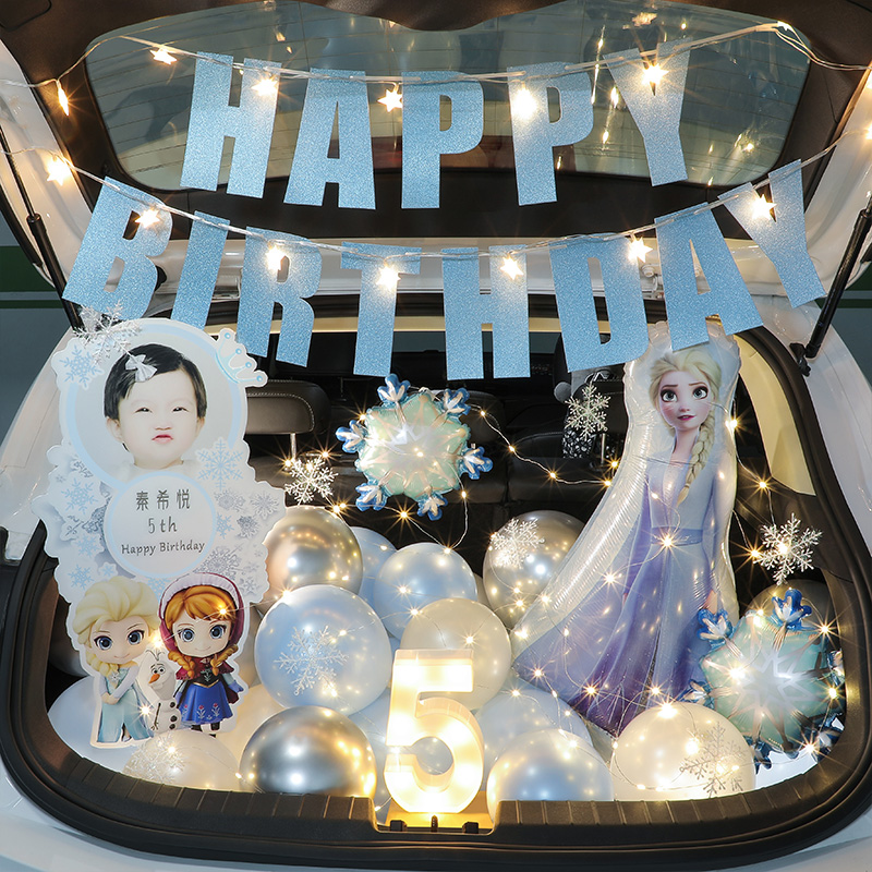 Boys and Girls car trunk surprise arrangement balloon daughter birthday car trunk decoration Frozen children