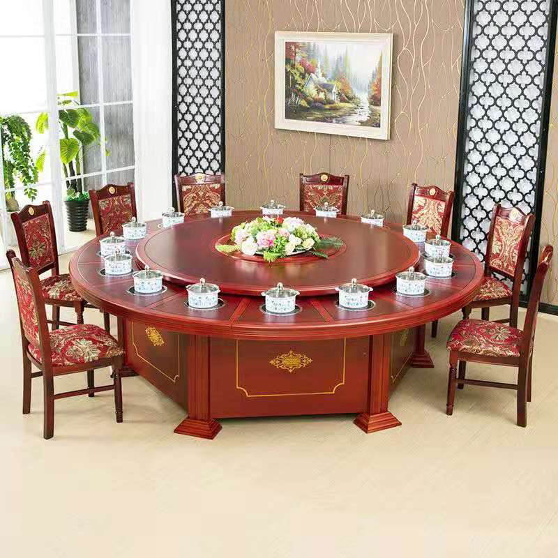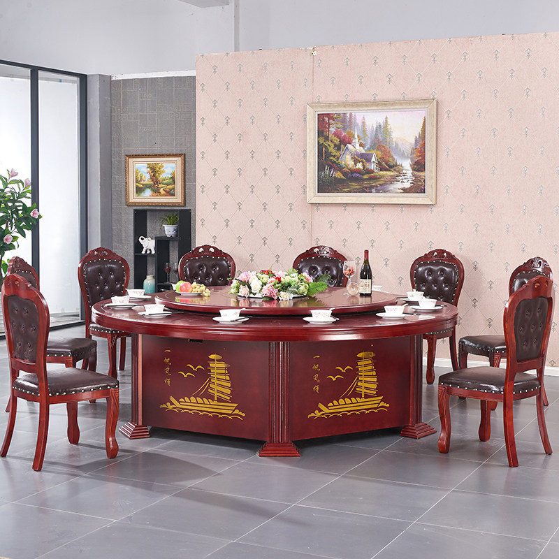 Hotel electric dining table large round table hotel large round table and chair combination homestay club 20 people automatic rotation with turntable