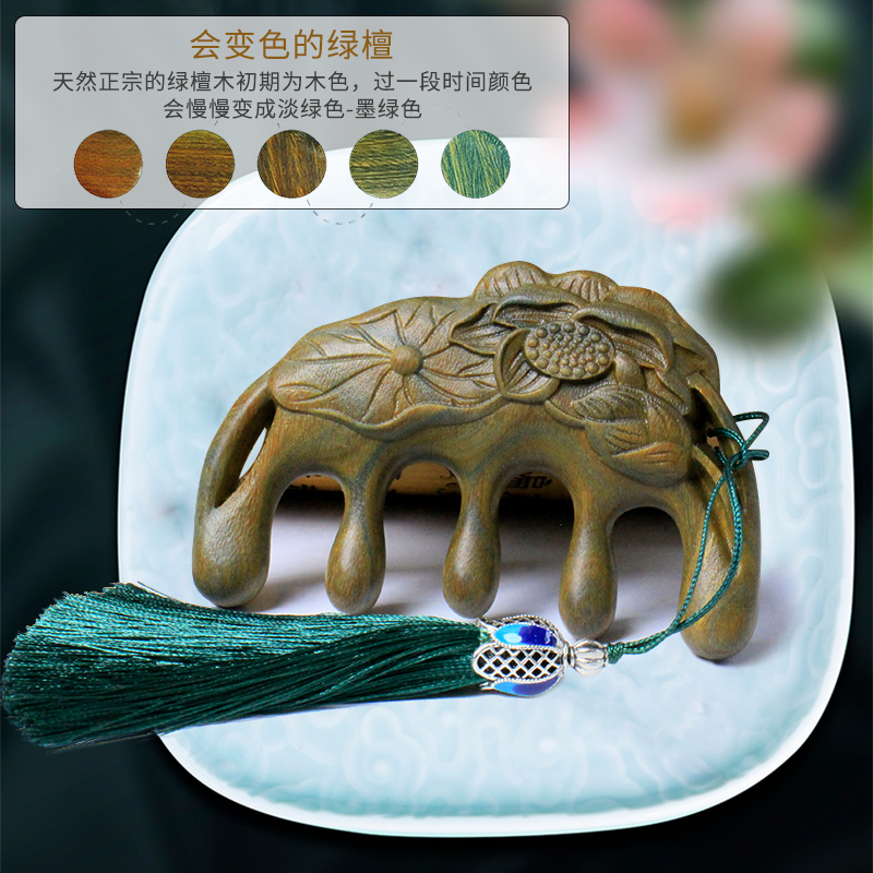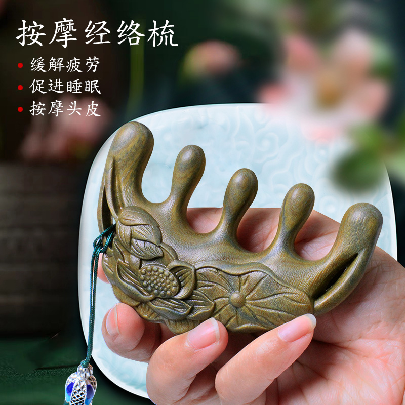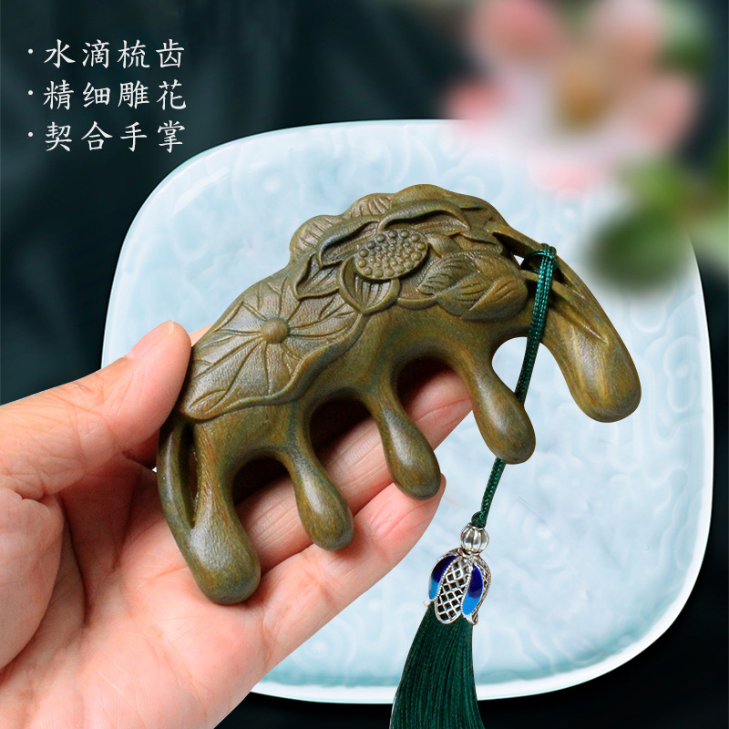 Green sandalwood water drop massage comb large wide-tooth curly hair comb head meridian comb anti-static scalp special wooden comb for men and women