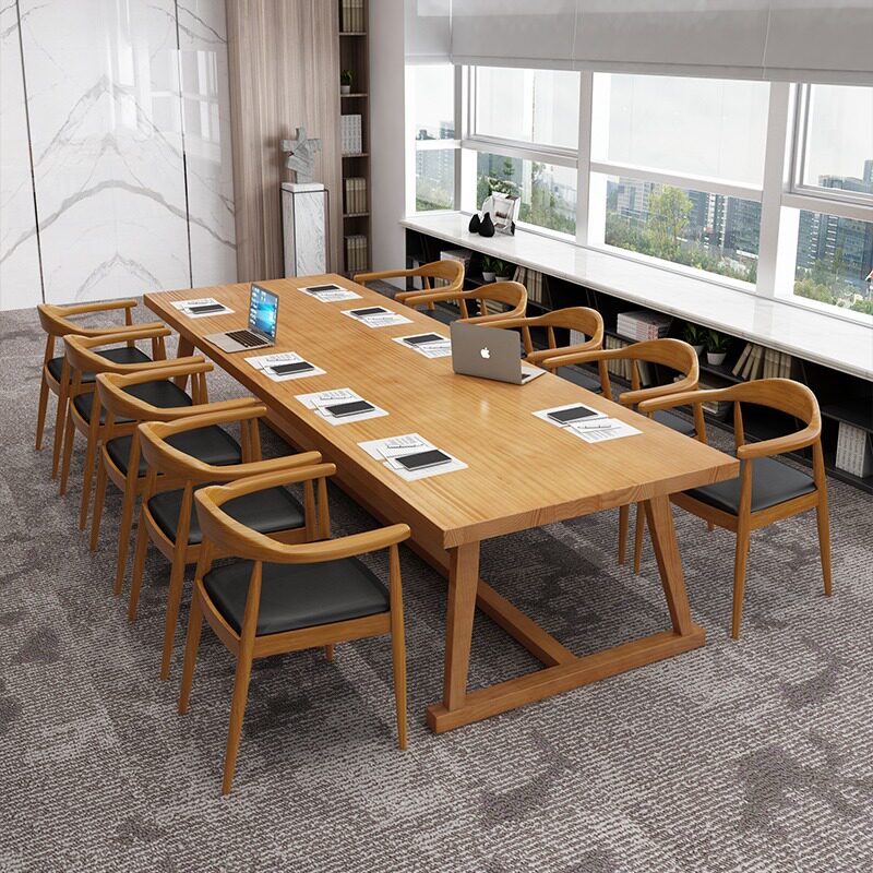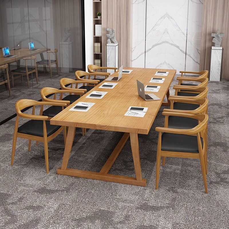 Nordic Office Talks Table And Chairs Combination Brief Strips Solid Wood Large Working Table Staff Reception Meeting Table Long Table