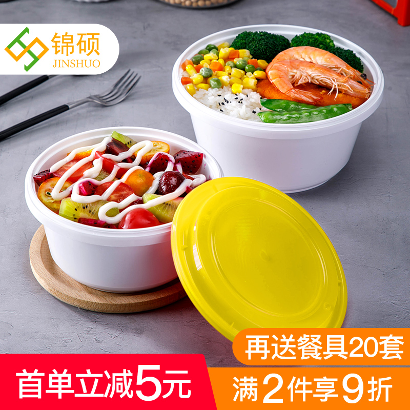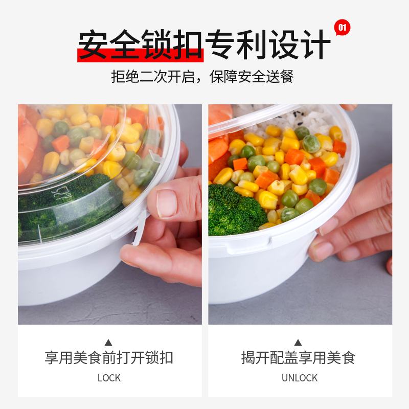 Disposable bowl high-end household packing box round lock fast food box bento box delivery leak-proof thick bowl with lid