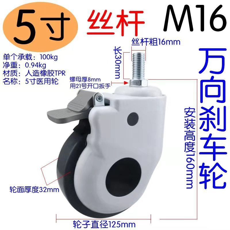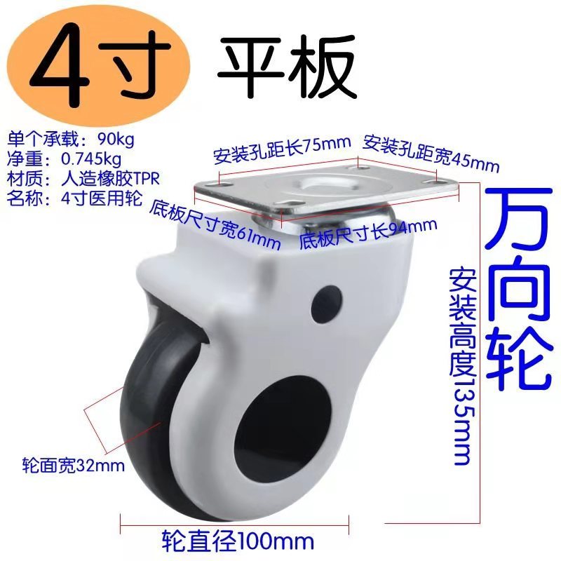 3 inches 4 inches 5 inches 6 inches universal wheel screw beauty machine hospital bed flat bottom double brake medical wheel silent cover caster