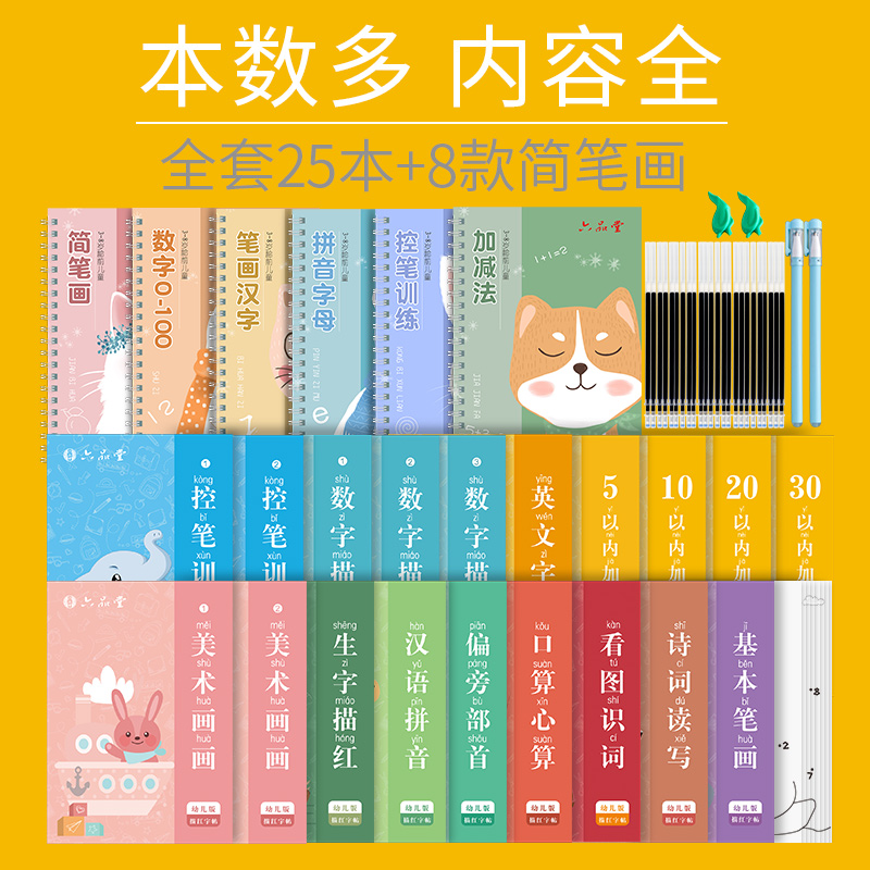 Children's Enlightenment Edition 6 copies (send 24 refills, 2 pens, 2 grips) Children's advanced version 25 copies, 8 simple strokes (send 24 refills, 2 pens, 2 grips)