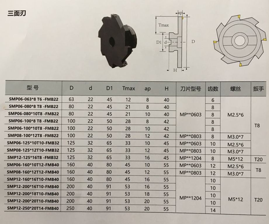 CNC sleeve type three-sided edge milling cutter disc T-slot side milling machining center slotting cutter indexable grooving cutter disc SMP