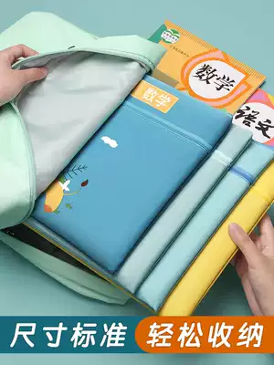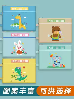 Subject Subject classification Document bag Zippered fabric Cartoon homework bag Primary school students ' Language and English textbooks Test papers storage book bag Portable canvas waterproof thickened large-capacity a4 information bag