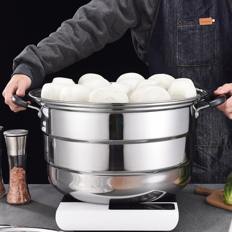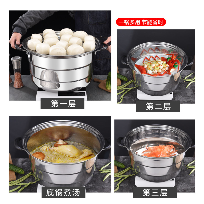Commercial large thickened 45cm stainless steel steamer three or four layers steamed steamed buns steamed buns steamed fish steamer Gas stove induction cooker