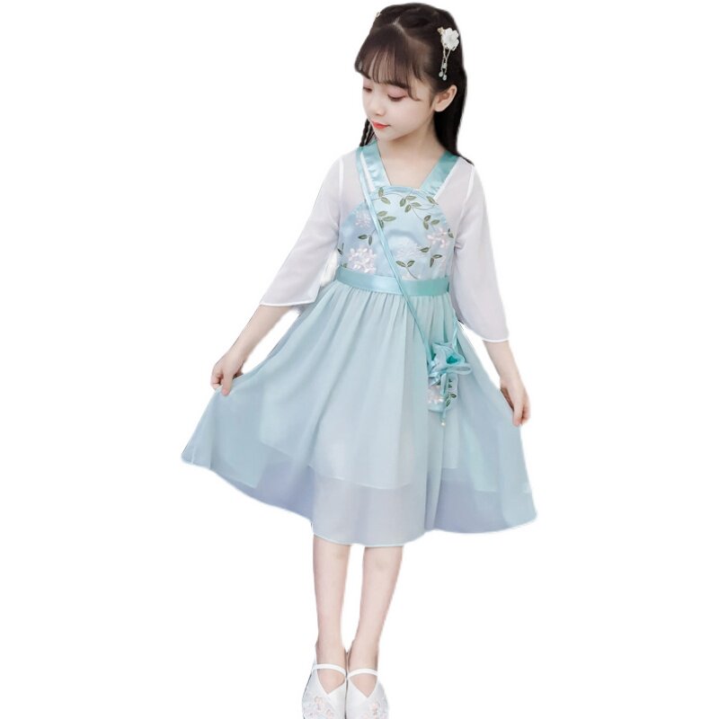 Korean version of girl 2021 Summer new ancient dress Han clothes Grand fairytale Fairy Super Fairy skirt Girl with summer clothes foreign dress b
