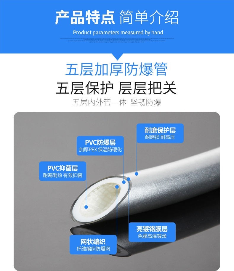 Household shower shower explosion-proof pipe joint accessories universal shower head hot and cold 2 meters connection pipe bracket