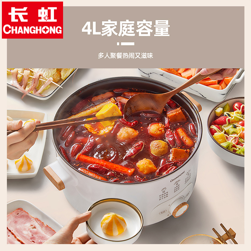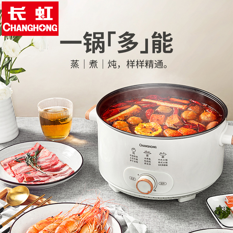 Changhong Electric Hot Pot Dormitory Student Quick Cooking Pot Multifunctional Household Integrated Small Electric Pot Net Red Steaming and Stewing Noodle Pot