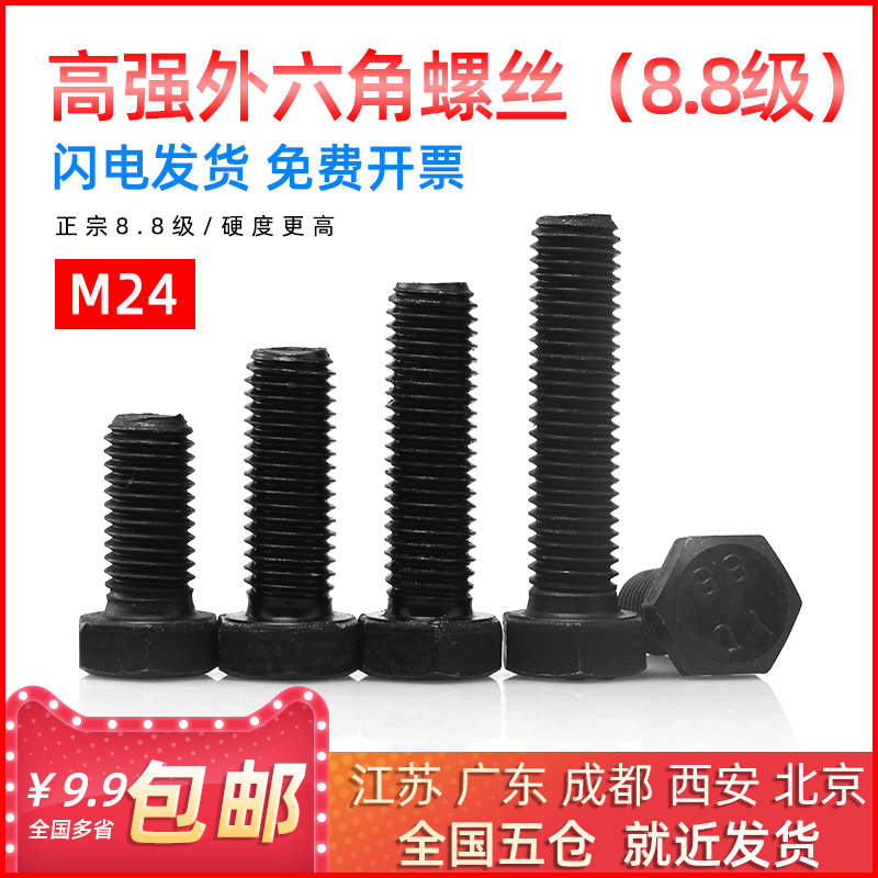 Black 8 level hexagonal screws high strength extended outside hexagonal bolts M24*45 50 55 60-300