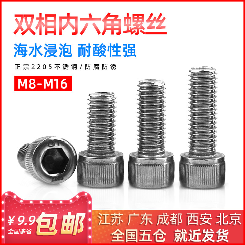 High strength 2205 dual - phase stainless steel hexagonal screw head bolt full thread M8 - M16