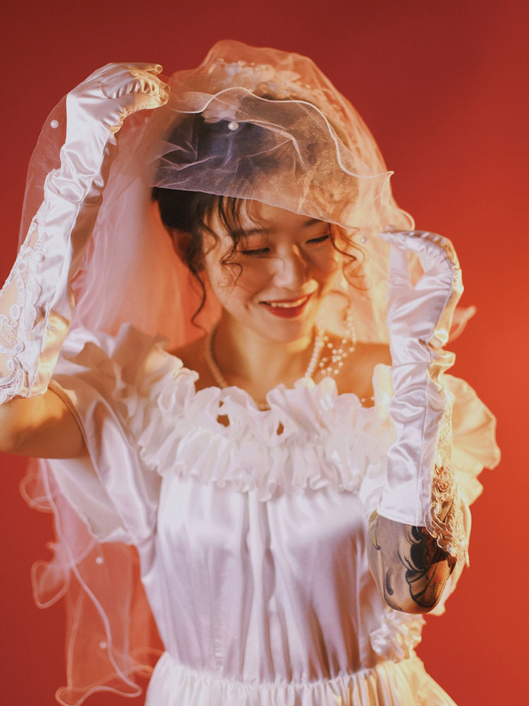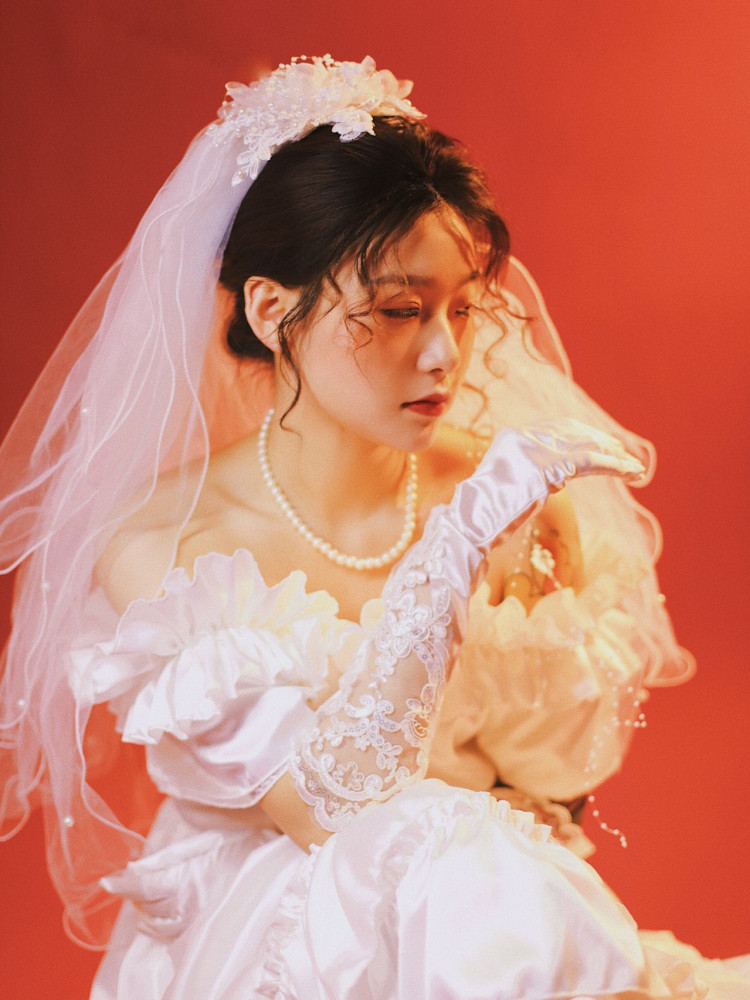 New retro nostalgic wedding harbor wind lace lace lace shoulder white dress theme photo