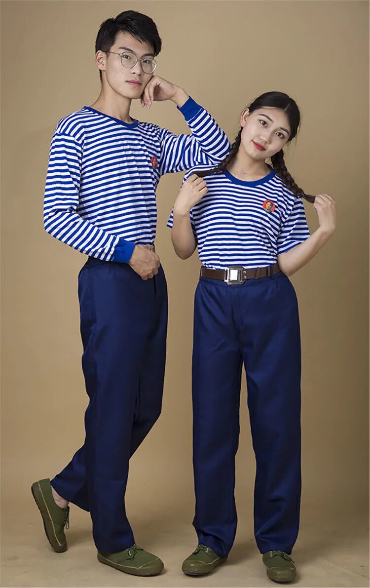 65 style old military pants Fanhua dance to perform military green sea blue work dress pants to remember men and women