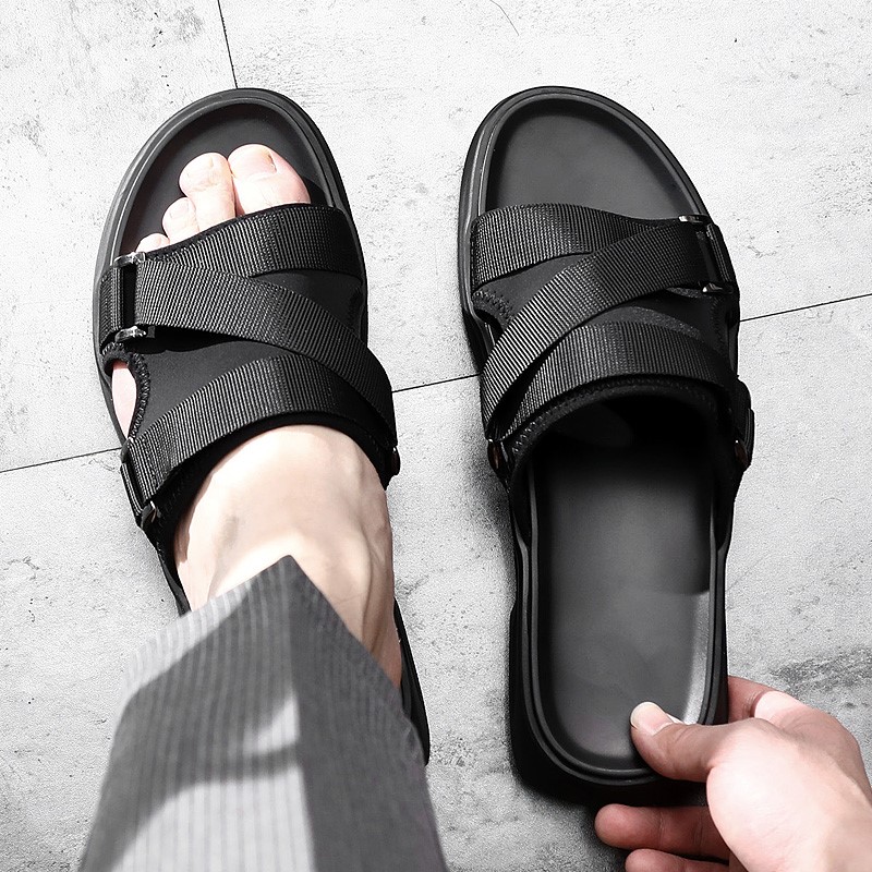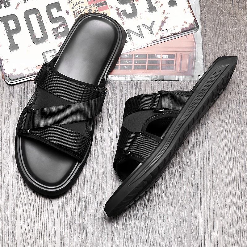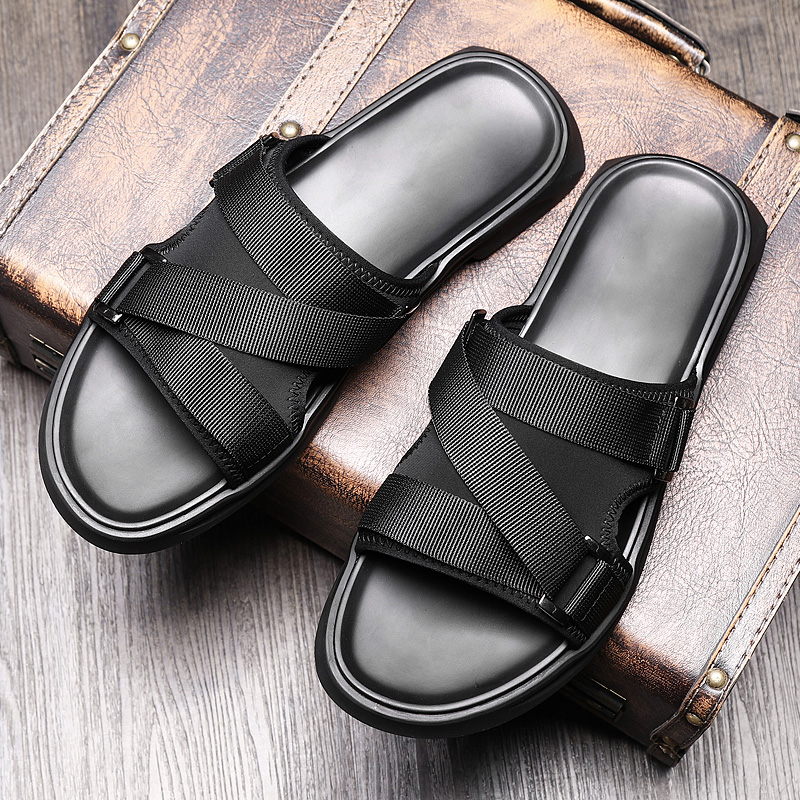 ROAD MAKER word slippers men's new summer thick bottom black daily casual webbing for men's slippers