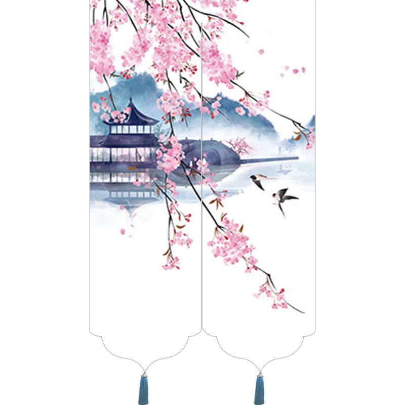 Landscape Pavilion Table Vintage Chinese Style Cloth Shelter Door Curtain Cloth Curtain China Wind Quality Hung Curtain Partition Window 120 Width Custom