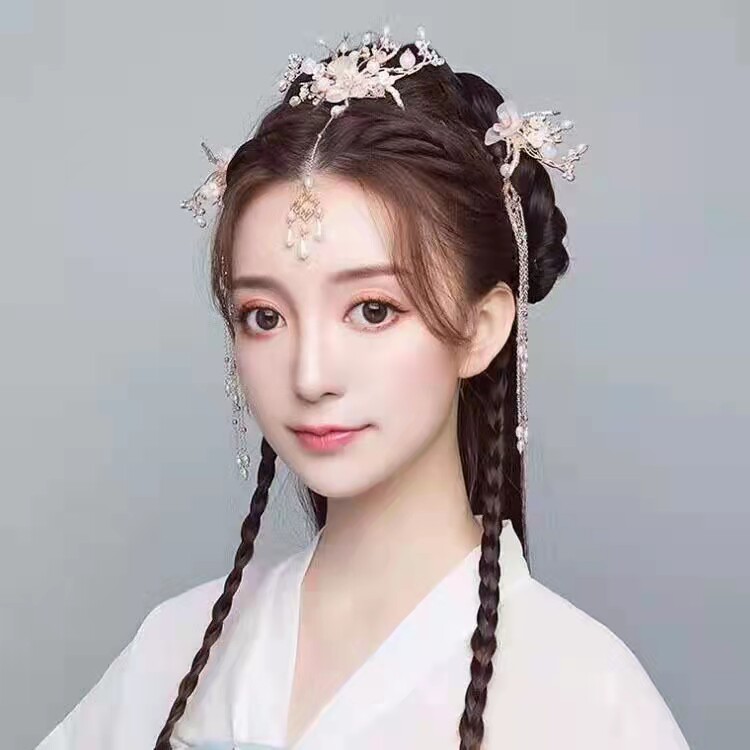Hanfu ancient costume head crown headdress ball hair accessories girls birthday tassel step shake crown crown princess performance accessories