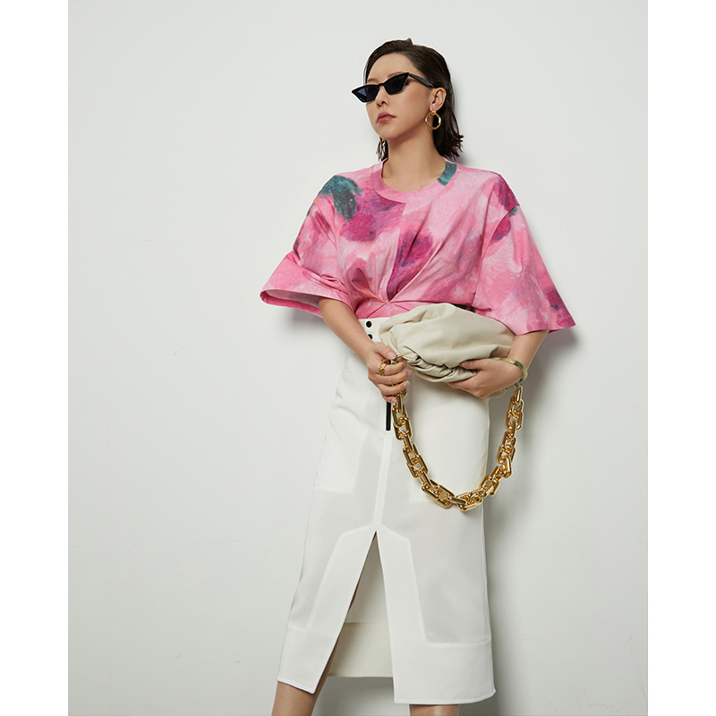 Z boss du home printing and dyeing cashew short sleeve T-shirt female light extravagant design feeling pure color genuine silk blend undershirt woman
