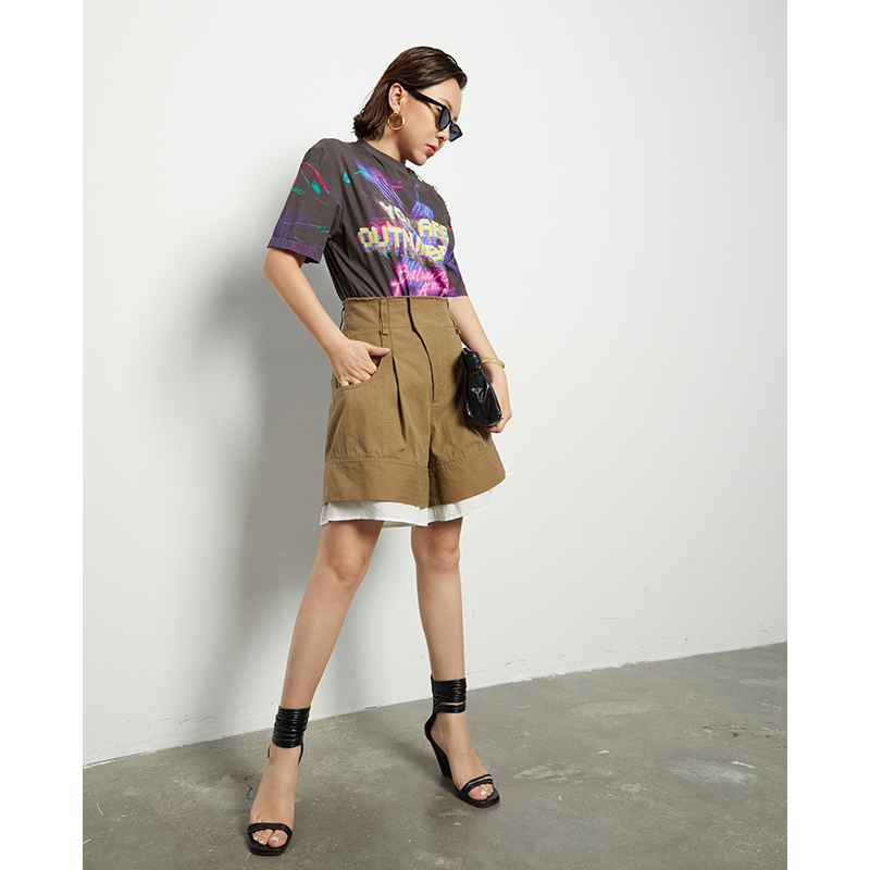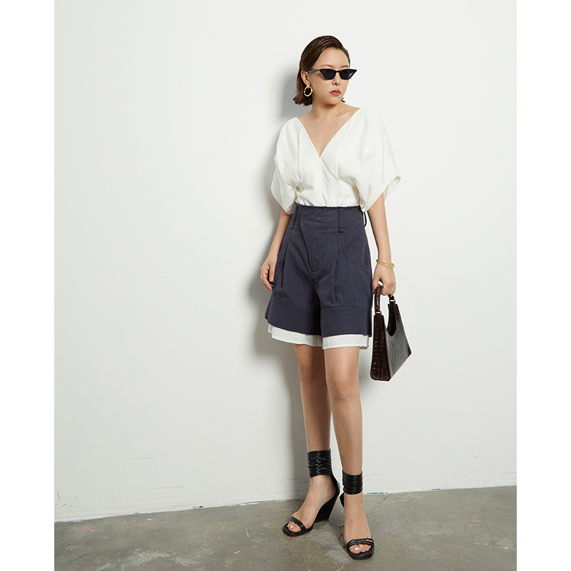 Z Boss Splicing Single Side Shorts Woman High Waist Display Slim Profile A Character Dress Pants Mulberry Silk Temperament Outline Shorts Woman