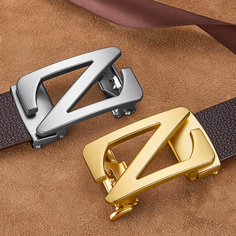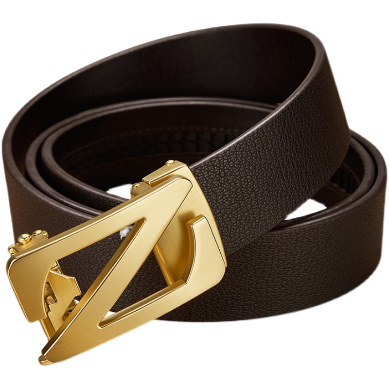 Z Buckle Strap Men Genuine Leather Automatic Buckle Youth Letter Pure Cow Leather Young Pants With Korean version Rav Laurenmarball Belt Male
