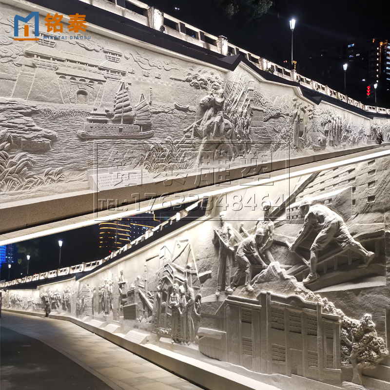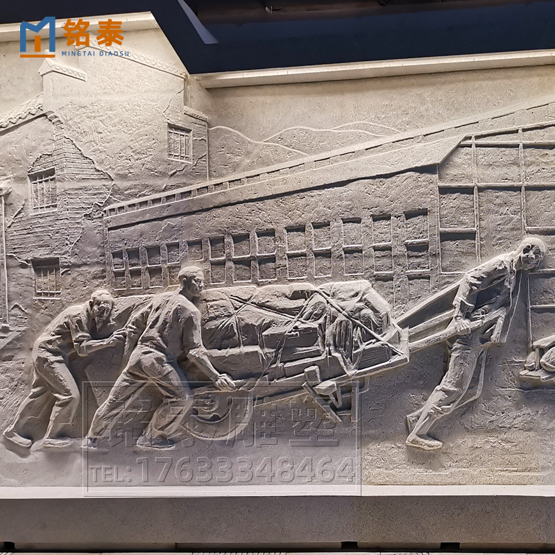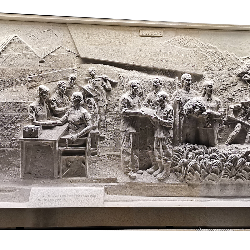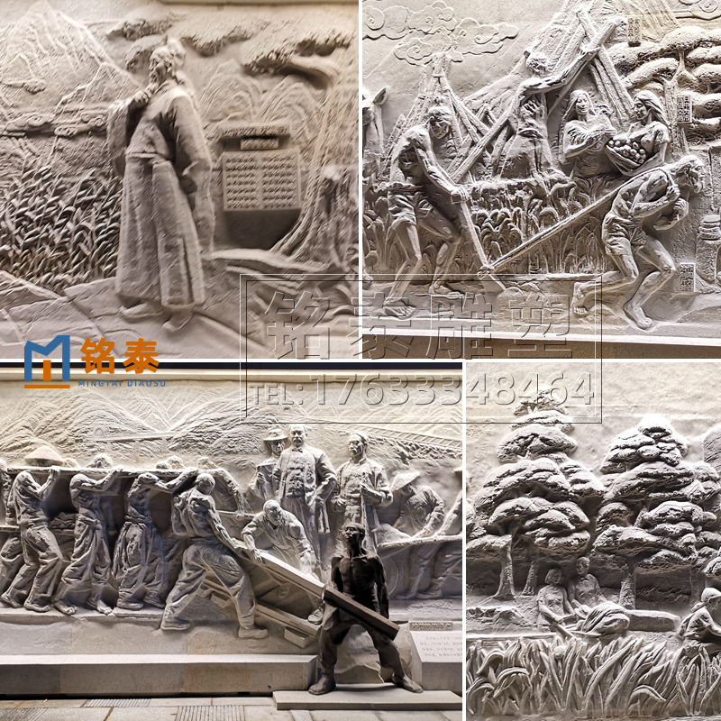 Gold stone carving relief mural wall farming culture character story outdoor park display screen wall manufacturer custom