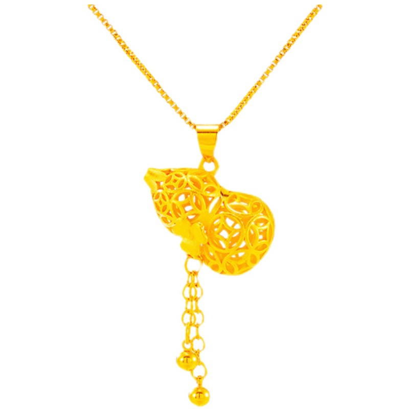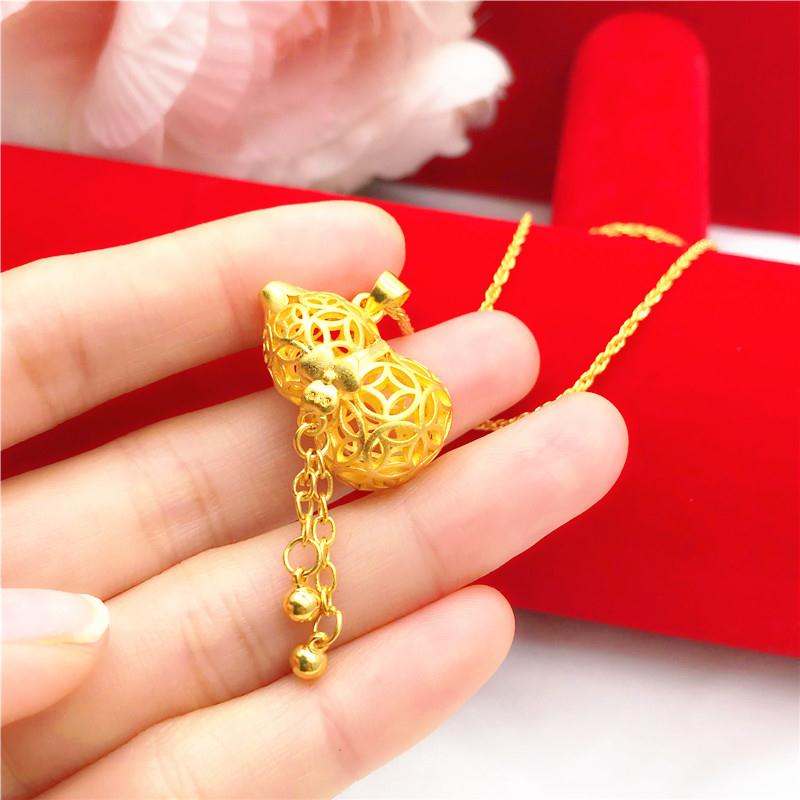Hong Kong 9999 real gold necklace female 3D hard gold blessing word gourd pendant female clavicle chain 24K pure gold gold