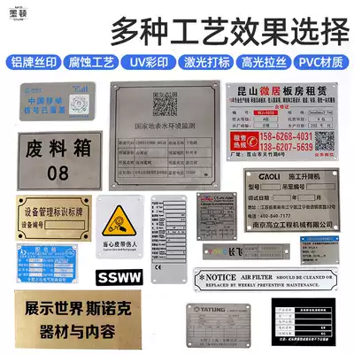 Metal nameplate Aluminum plate Alloy custom PVC plastic machinery Screen printing Laser engraving corrosion engraving LOGO distribution box machine metal panel Stainless steel copper and iron brand UV equipment trademark brand sticker production