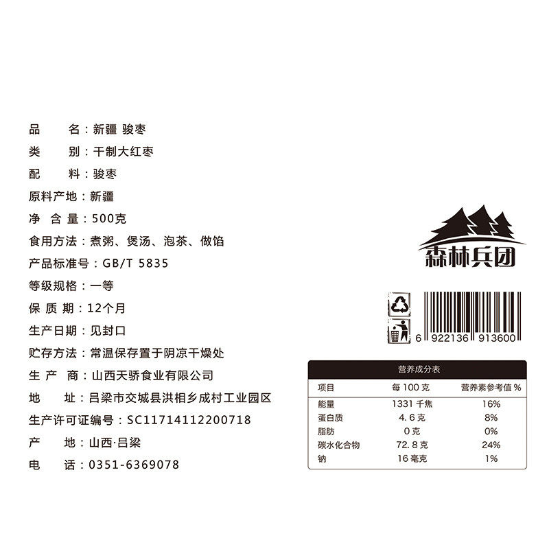 Tianjiao Red Forest Corps Xinjiang Jujube Junzao 500g * 2 Soup Jujube Porridge Raw Material Non-Jujube Walnut