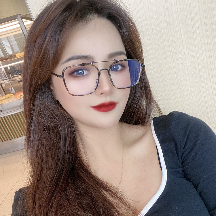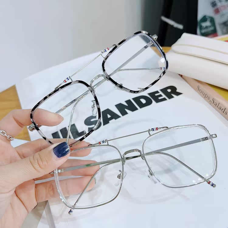 tb small red book net red with the same square retro glasses tortoiseshell bean flower plain face small anti-blue light flat mirror