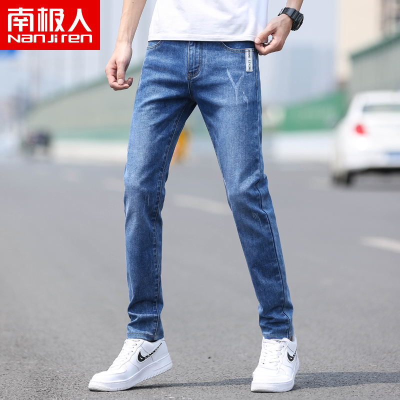 Antarctic People's Spring and Autumn Autumn Jeans Men Loose Straight Barrel Autumn Winter Style Add Suede Elastic Casual Pants Winter Clothing
