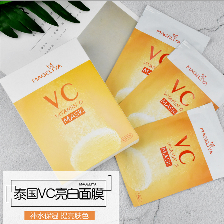 Thailand MAGELIYA VC Mask Moisturizing and Brightening Pore Tightening Skin Care 10 Pieces