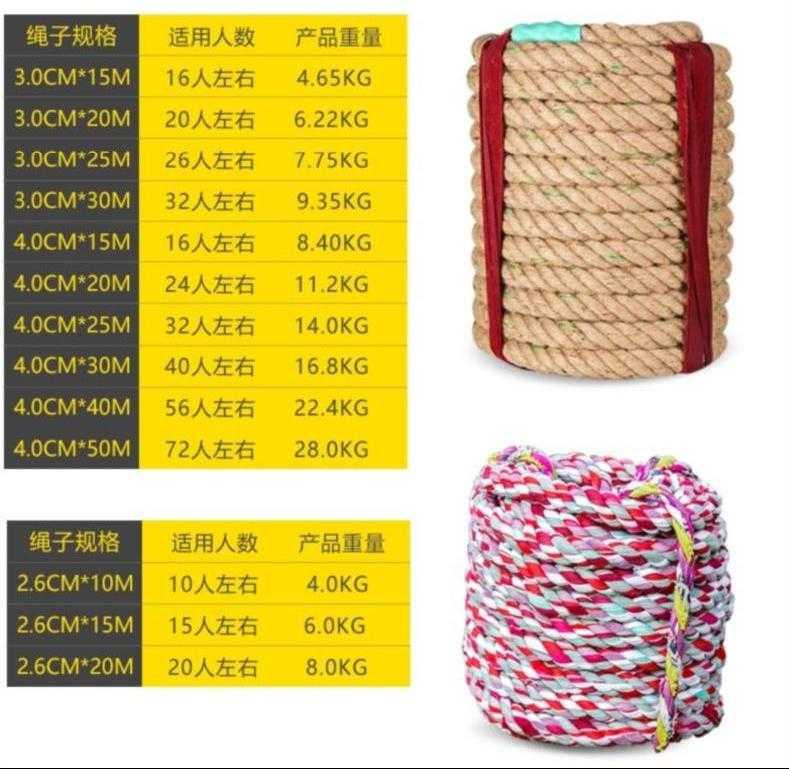 20 20 people around 15 m 4cm hemp ropes 20 people around 15 m 4cm 4cm hemp rope with steel wire 30 people around 25 m 4cm hemp rope 35 people around 30 m 4cm hemp rope
