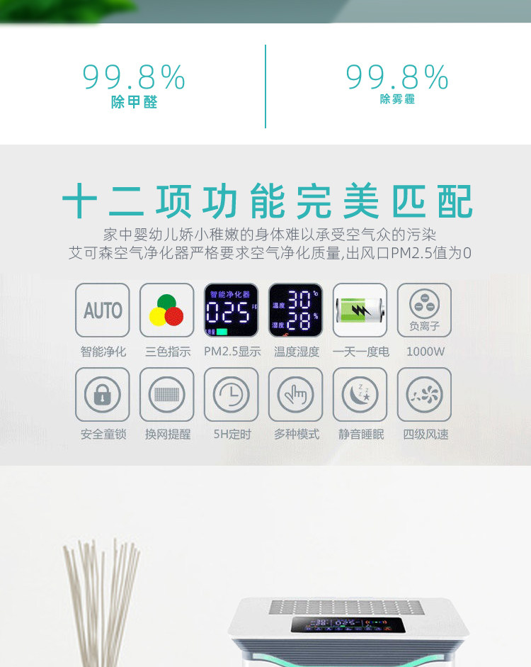 Humidification, sterilization, regular sterilization, formaldehyde removal, smoke removal, dust removal, haze removal, pollen removal, particulate matter removal
