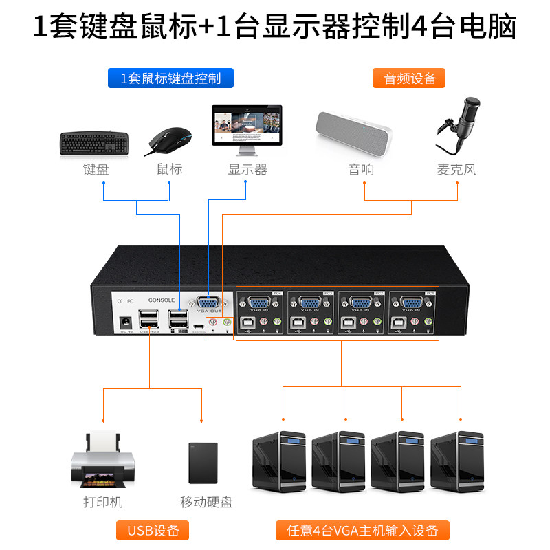 Maituo MT-0401VK industrial-grade kvm switcher 4-mouthed computer vga switching machine 4 in 1 out with audio