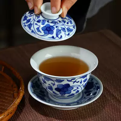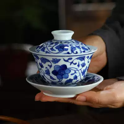 Blue and white hand-painted ore health cover bowl Collection-level blue and white hand-painted ore health cover bowl gift box customization Find customer service delivery in about 15 days