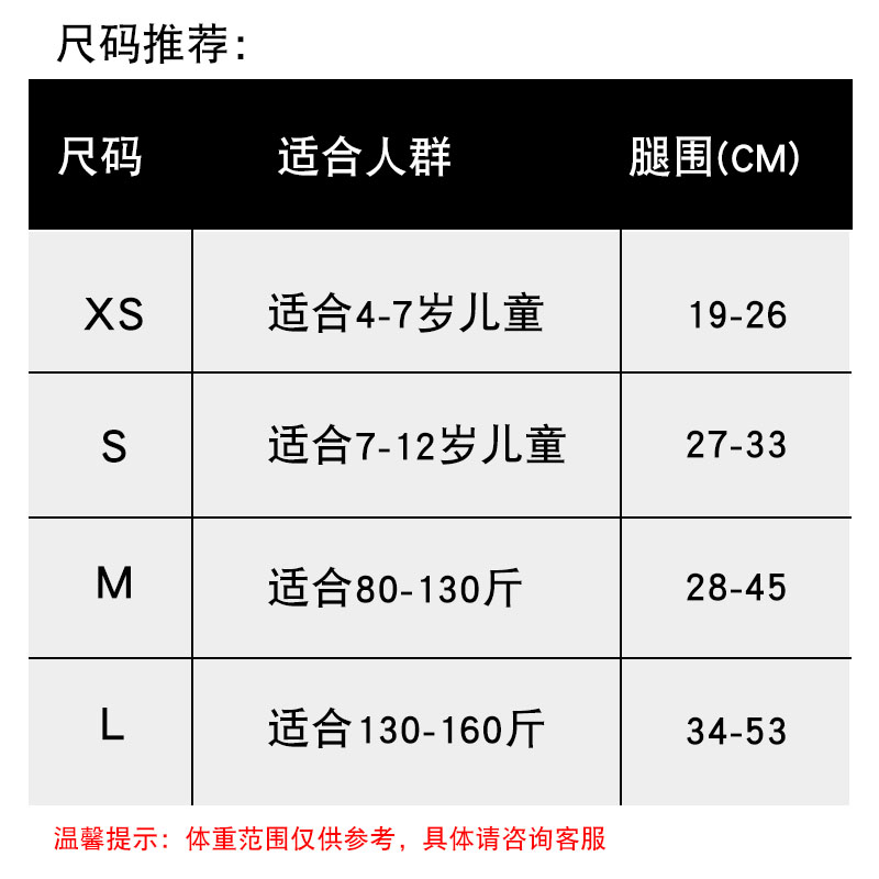 XS (suitable for children aged 4-7 years of age) S (suitable for children aged 7-12) M (suitable for 80-130 catty people) L (suitable for 130-160 catty people)