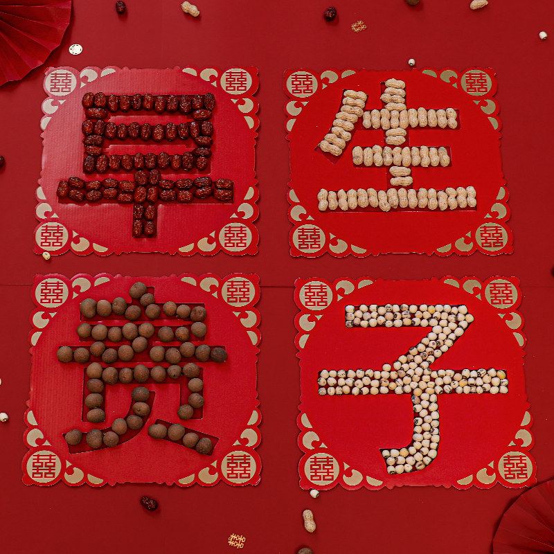 Early birth Guizi sticker gold word gold coin (diagonal length 47 5cm) premature birth of your unwoven cloth cross (with dried fruits) (long 91cm) Good for hundreds of years PHNOM PENH UNWOVEN CLOTH (without dry