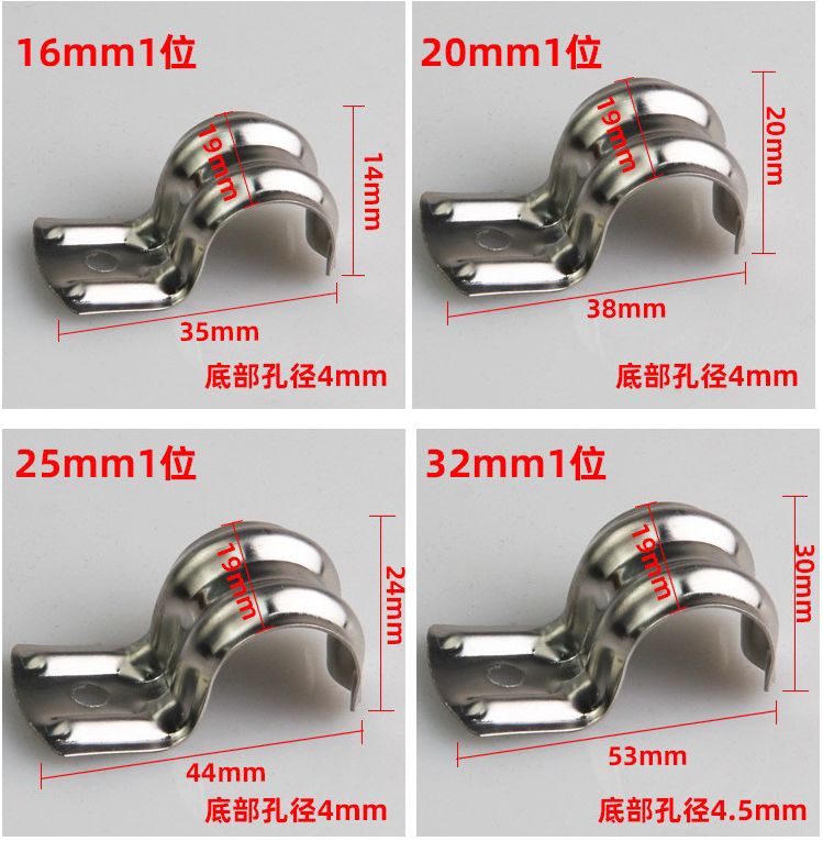 Single side riding card thick stainless steel pipe card u type P type half side 16 iron row card 20 line pipe buckle fixed pipe clamp