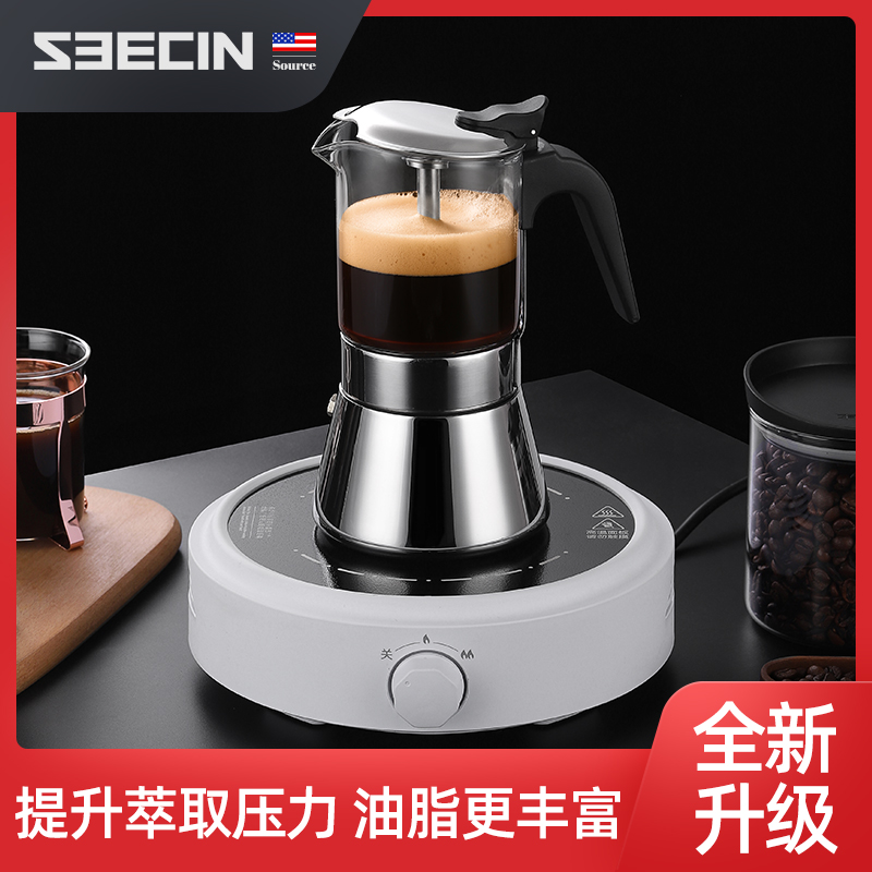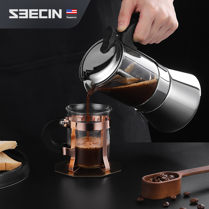 American seecin double valve Mocha pot manual coffee maker Household portable concentrated stainless steel coffee maker