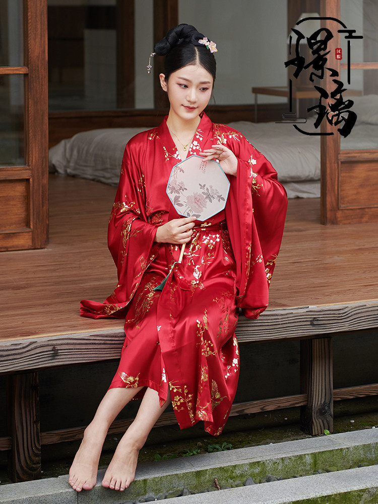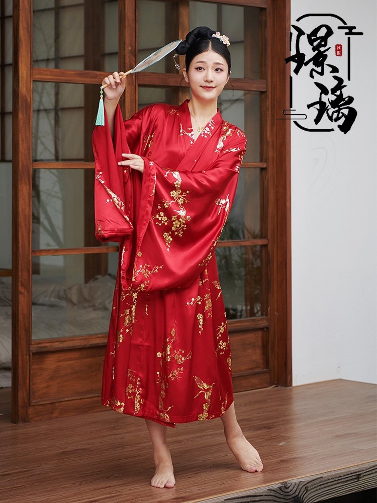 Glazed Original China Wind Gusto Emulation Silk Chinese Hanfu Bridal Wedding Morning Gown