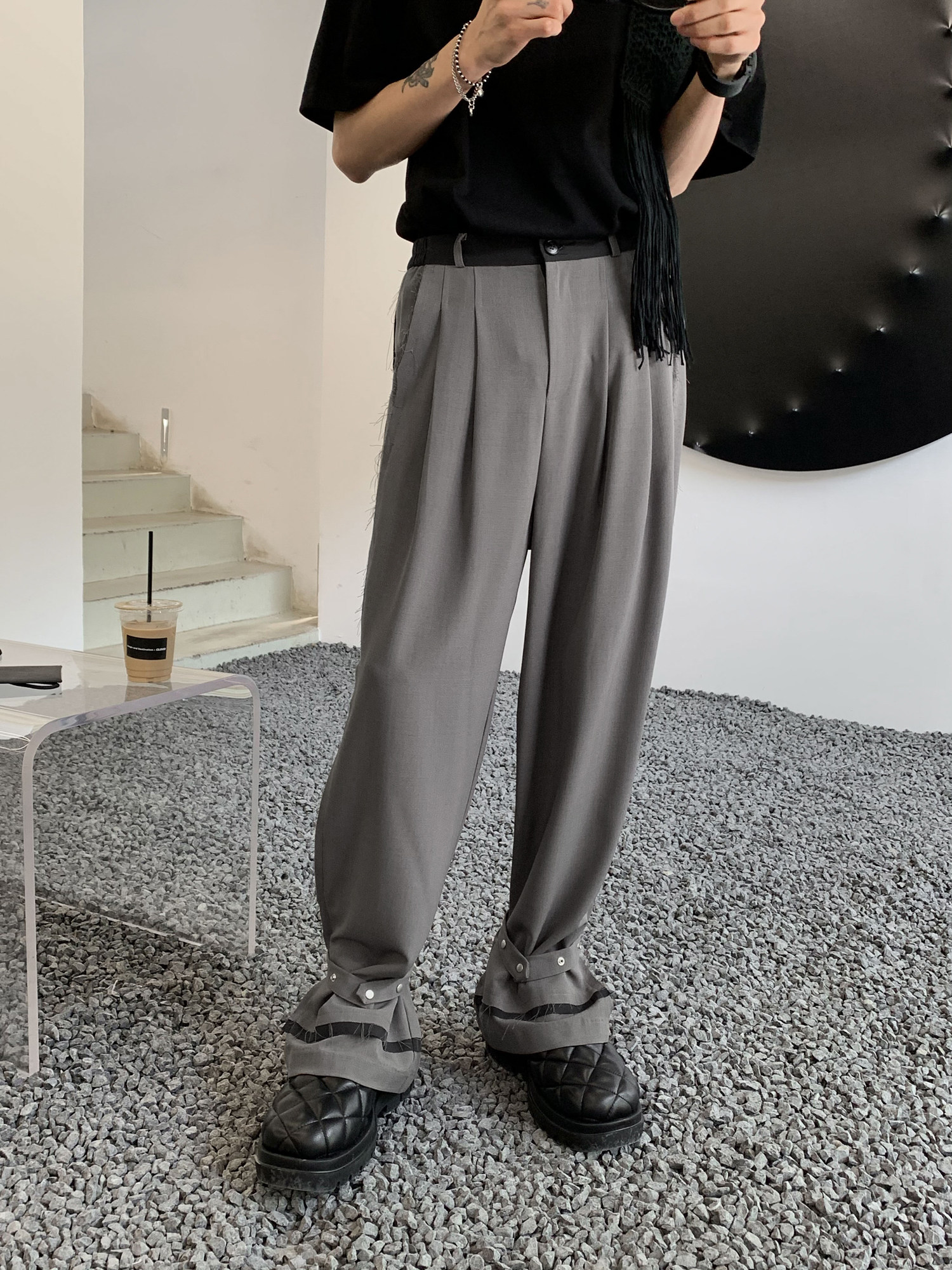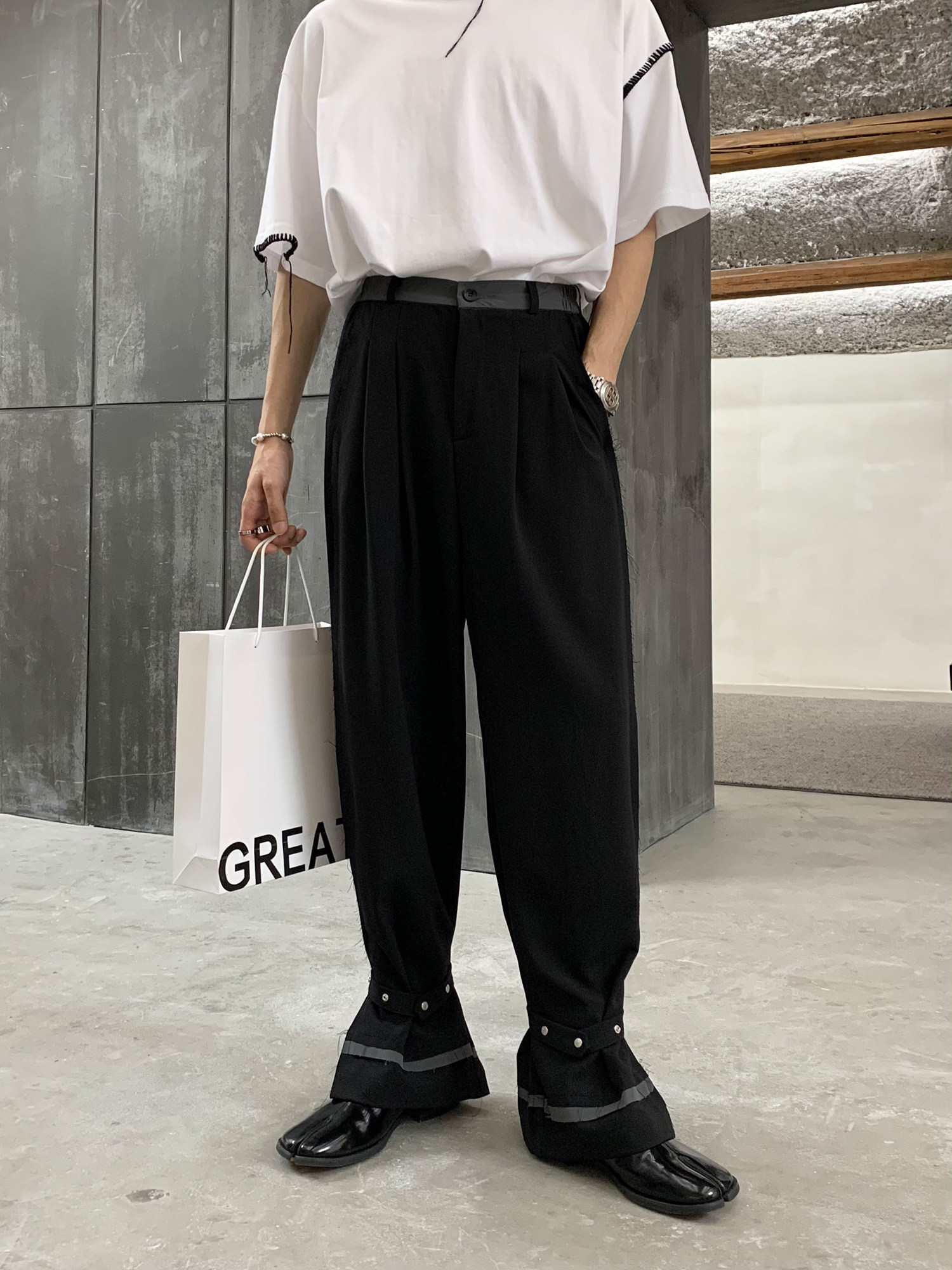 HOZI Trendy Niche Design Pants Feet Strap Crash Color Splice Easy West Pants Mesh Red Ins Pituitary Pants Men Pants