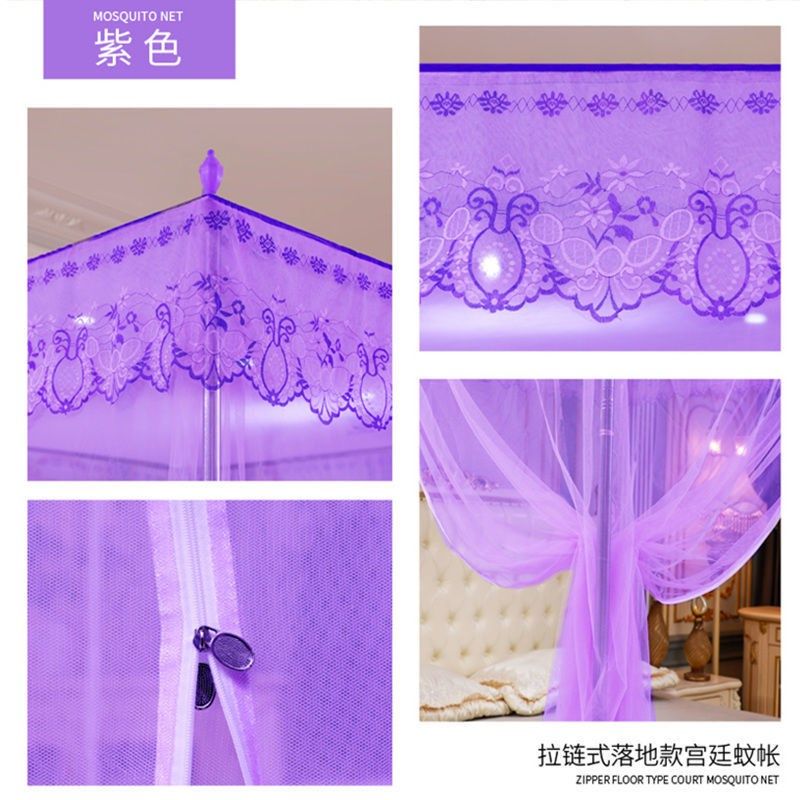 Antarctic zipper-type mosquito net three-door floor-to-ceiling princess wind lace double home free installation palace pattern